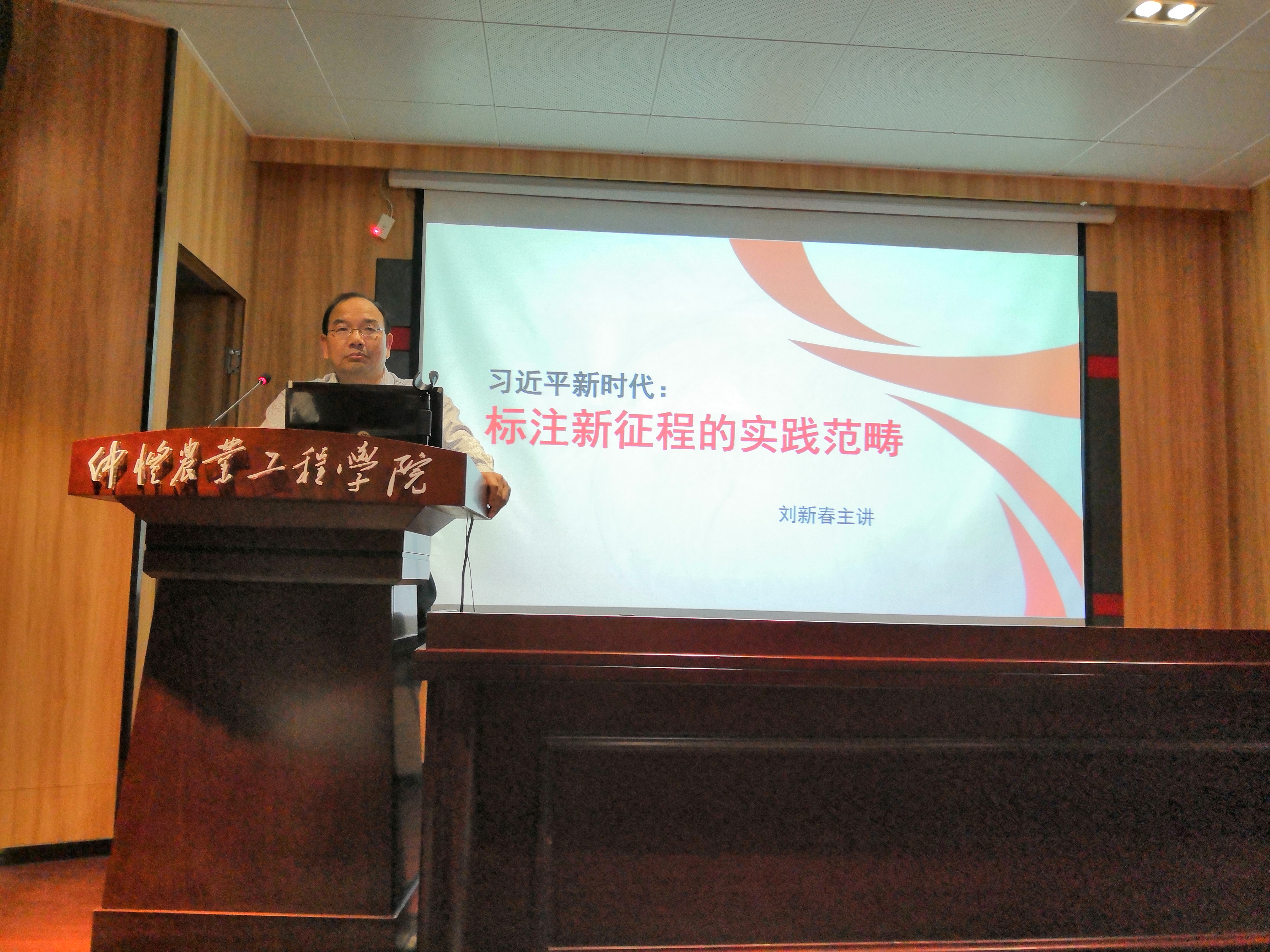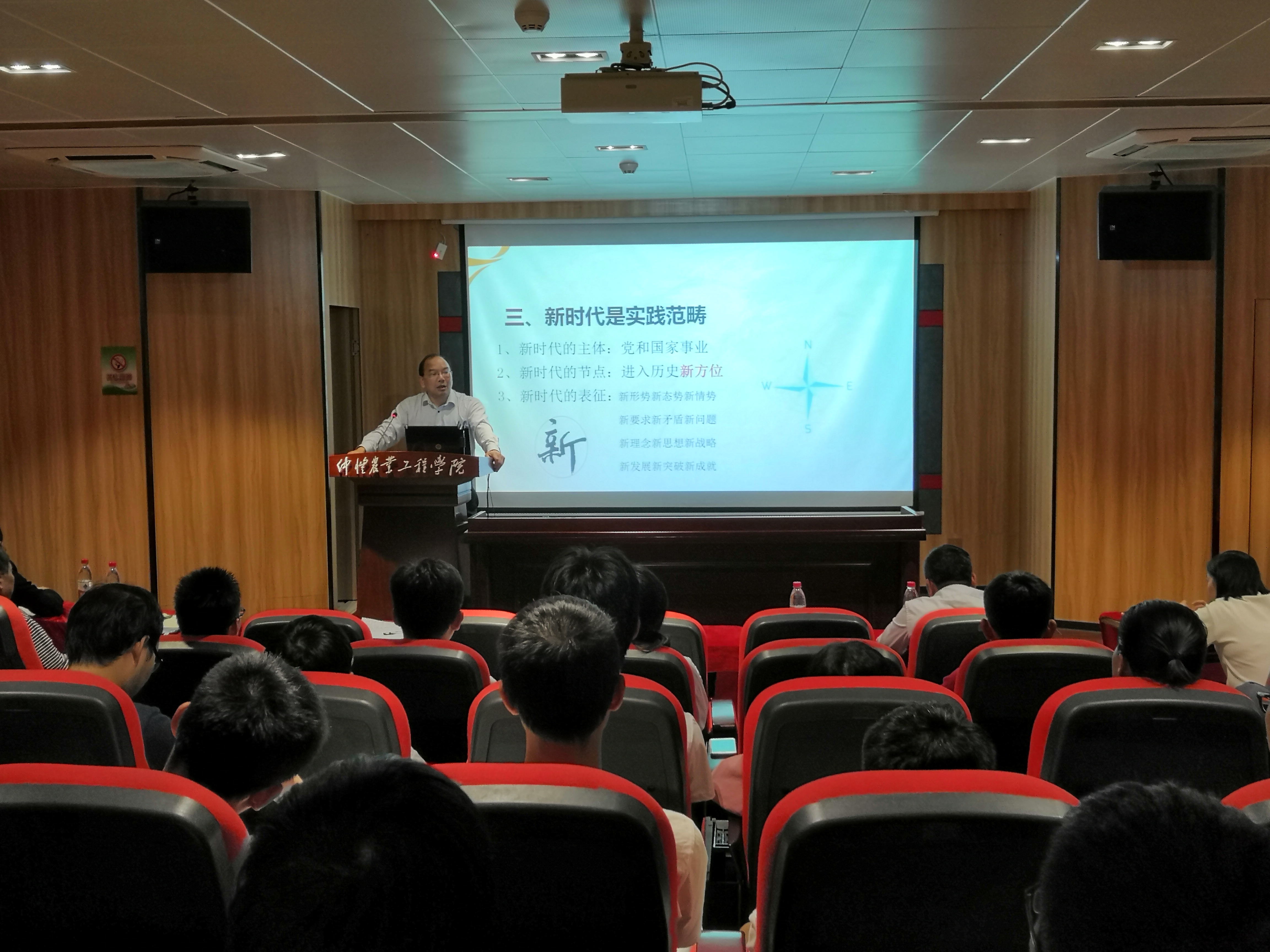 11月30日下午,丰满内射白浆视频在英东楼111学术报告厅举行“形势与政策”大讲堂第一讲,讲座主题是“习近平新时代:标注新征程的实践范畴”,由湖南省马克思主义研究会副会长、湖南省委宣传部第一批理论服务专家、湖南省高校思政课教学指导委员会委员、湖南省高校思政课“优秀教师标兵”、湖南省“两课”优秀公开课特等奖获得者、湖南农业大学丰满内射白浆视频院长刘新春教授主讲。丰满内射白浆视频全体教师、部分“形势与政策”兼职教师和本科生参加了讲座活动,由丰满内射白浆视频院长蔡立彬教授主持。