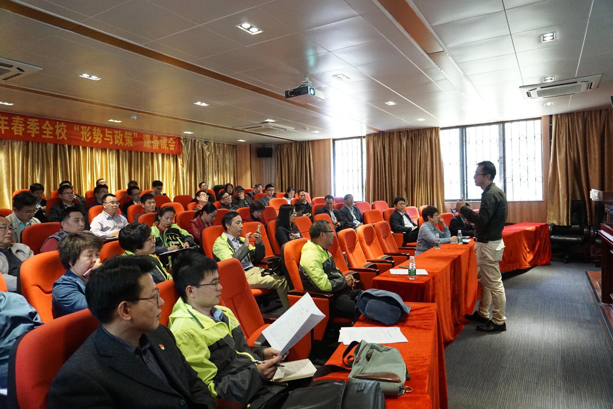 为深入学习贯彻党的十九大精神和2018年全国两会精神,提升“形势与政策”课质量和水平,根据《中共中央办公厅、国务院办公厅关于进一步加强和改进新形势下高校宣传思想工作的意见》和《广东省教育厅关于做好2018年春季高校党委书记、校长和院(系)党委书记、院长(系主任)上第一堂思想政治理论课工作的通知》(粤教思函[2018]15号)要求,4月8日下午,我校召开了2018年春季全校“形势与政策”课备课会。会议由学校党委副书记向梅梅主持,各二级学院党总支书记、院长,丰满内射白浆视频全体教师和“形势与政策”课兼职教师参加了会议。