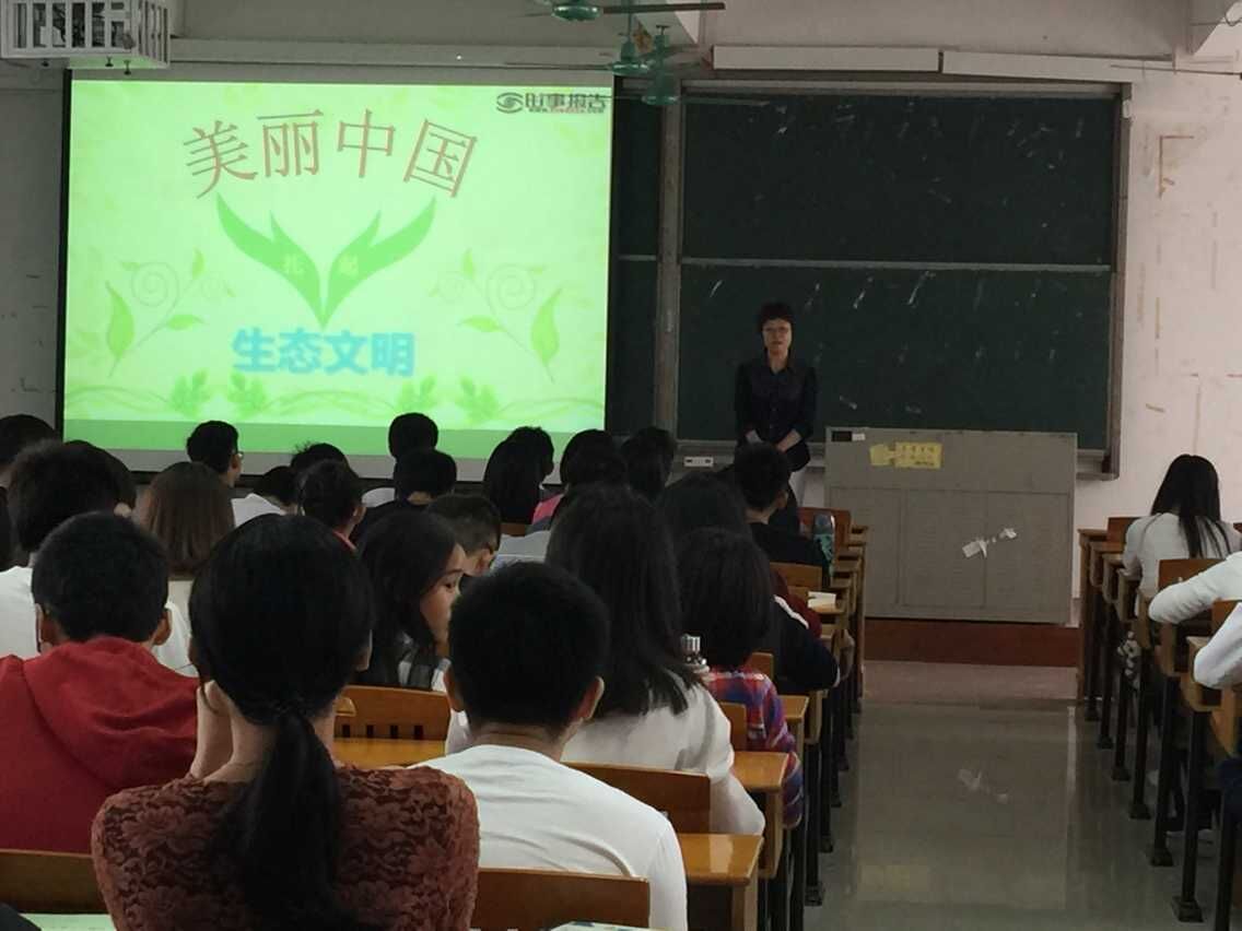 向书记首先淡了对“Ecology”生态学一词的认识和理解,同时与学生互动,从而引出本期讲授的主题—生态文明托起美丽中国。她从“生态文明的内涵与意义”、“我国生态文明建设历程”“存在的问题”等几个方面进行了详细的讲解。