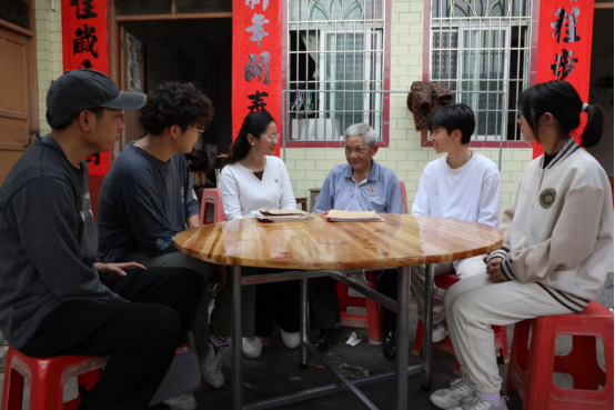 年例庆典上,舞狮的鼓点与飘色的巧思让师生们沉浸于岭南民俗的魅力。“非遗不仅是技艺,更是乡村的精神根脉。乡村振兴需要文化自信的支撑,而自信源于对传统的理解与传承。”作为思政课教师,周映萍在活动现场为学生讲解年例背后的文化内涵。学生们跟随八旬老党员苏政翻阅《祥章历史大小事》,聆听村庄变迁故事,一堂“行走的思政课”悄然展开:从舞狮到飘色表演,非遗传承的种子在年轻一代心中生根发芽。非遗技艺的匠心让年轻一代体会到“守正创新”的时代内涵。