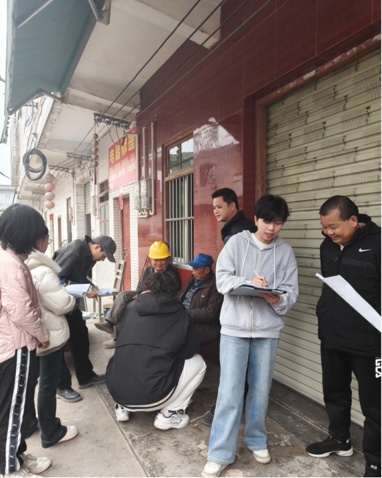今年的年例不仅是文化盛宴,更是一场“耕读教育”的实践课。在河堤沿岸,团队与石板镇党委书记冼辉、村民共同挥锹培土,种下百余棵“年例林”。植树活动转化为生态思政课堂:“每一棵树都是‘绿水青山’的缩影,劳动是理解生态文明最直接的方式。”村干部余春艺带头省下年例经费用于绿化,村民自发参与的热情感染了师生。团队还结合无人机航拍与水质检测数据,为村庄绘制生态“画像”,提出构建“步步有景”的乡村景观网络,将耕读实践转化为科学规划。