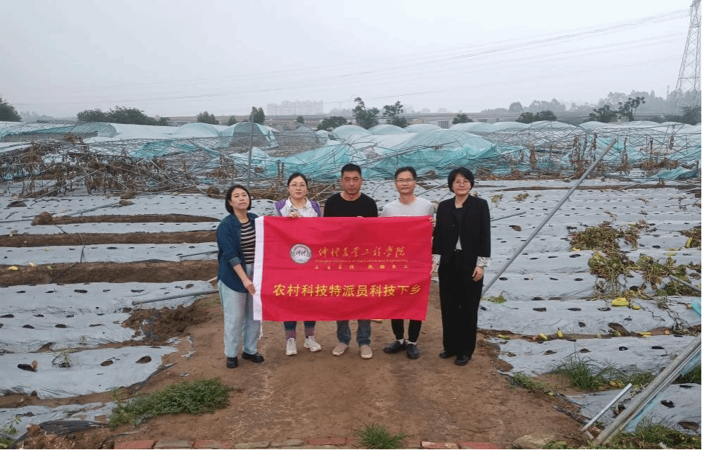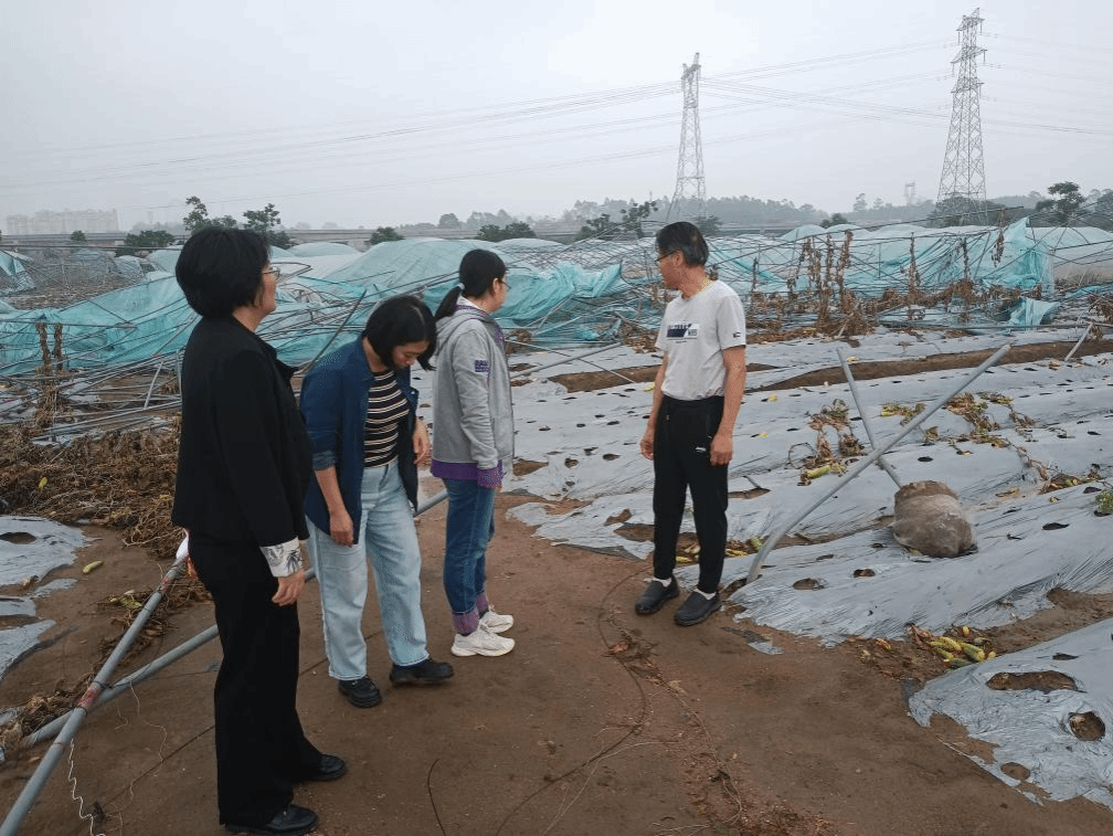 近期的极端天气导致中裕农业合作社大棚严重损毁,黄瓜秧苗面临二次灾害威胁。作为对口帮扶该企业的科技特派员团队负责人,仲恺农业工程学院科技特派员许二梅副教授迅速反应,在得到企业受灾后的当天下午立即邀请该校农作物灾害防控专家郑奕雄教授团队赶赴现场,同时联动清城区工信局总经济师王红、农业农村股股长甘媛等组成联合工作组,实地勘察灾情。