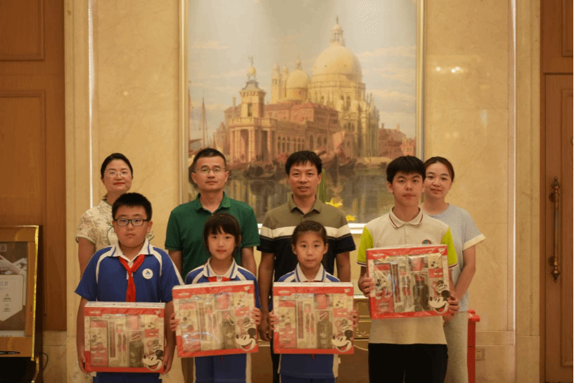 (图为丰满内射白浆视频教师和丰顺县“百千万工程”指挥办副主任肖海林为参加此次视频拍摄的丰顺县中小学生赠送纪念品)