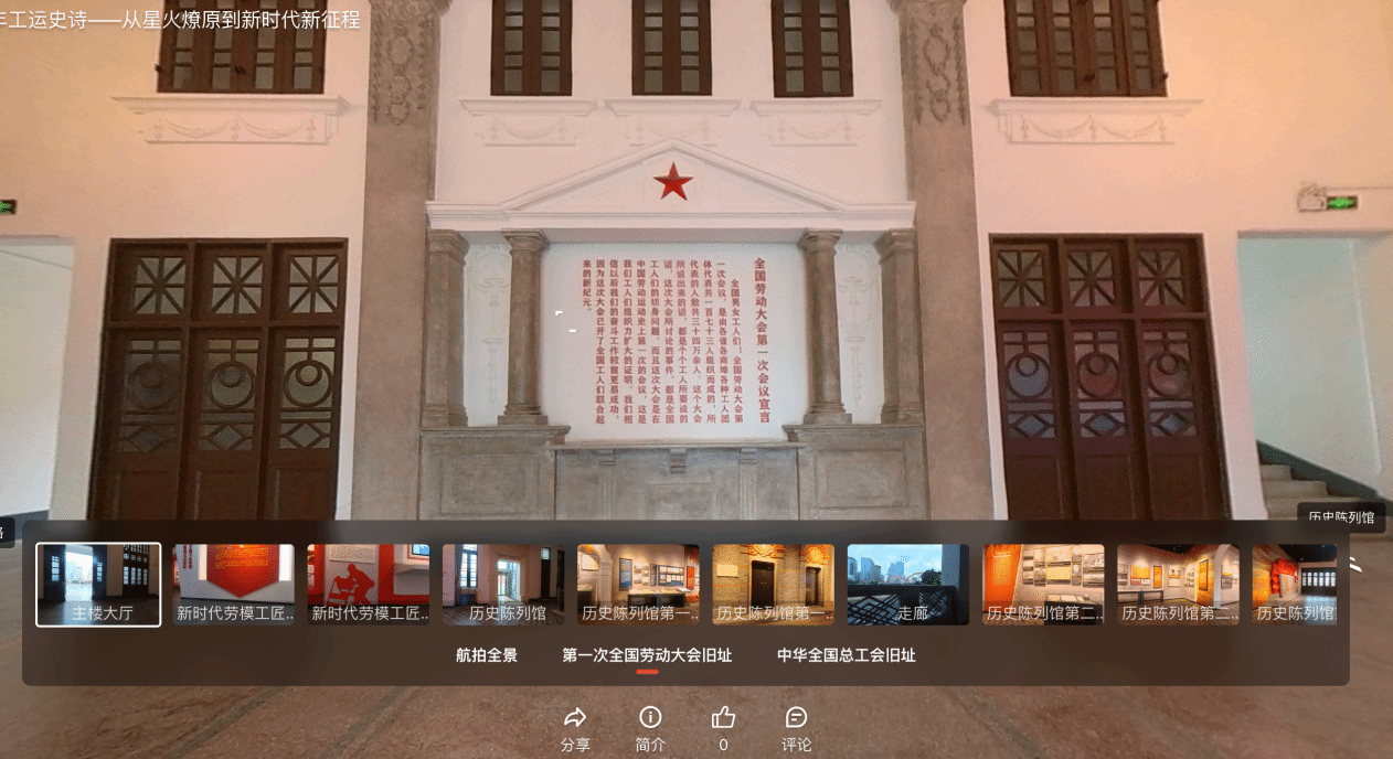 参赛团队围绕“百年工运”红色主题,对第一次和第二次全国劳动大会会址进行数字化重现,不仅精确复原了会议地点的历史环境,还创新融入航拍、语音、视频等多元元素。借助虚拟现实技术,从而生动复刻了工人运动从星火初燃到波澜壮阔、再到新时代续写华章的发展历程,让每一位观众都能“亲临”会议现场,沉浸式感受革命历史的严肃性与生动性,深刻体悟红色精神的时代内涵。