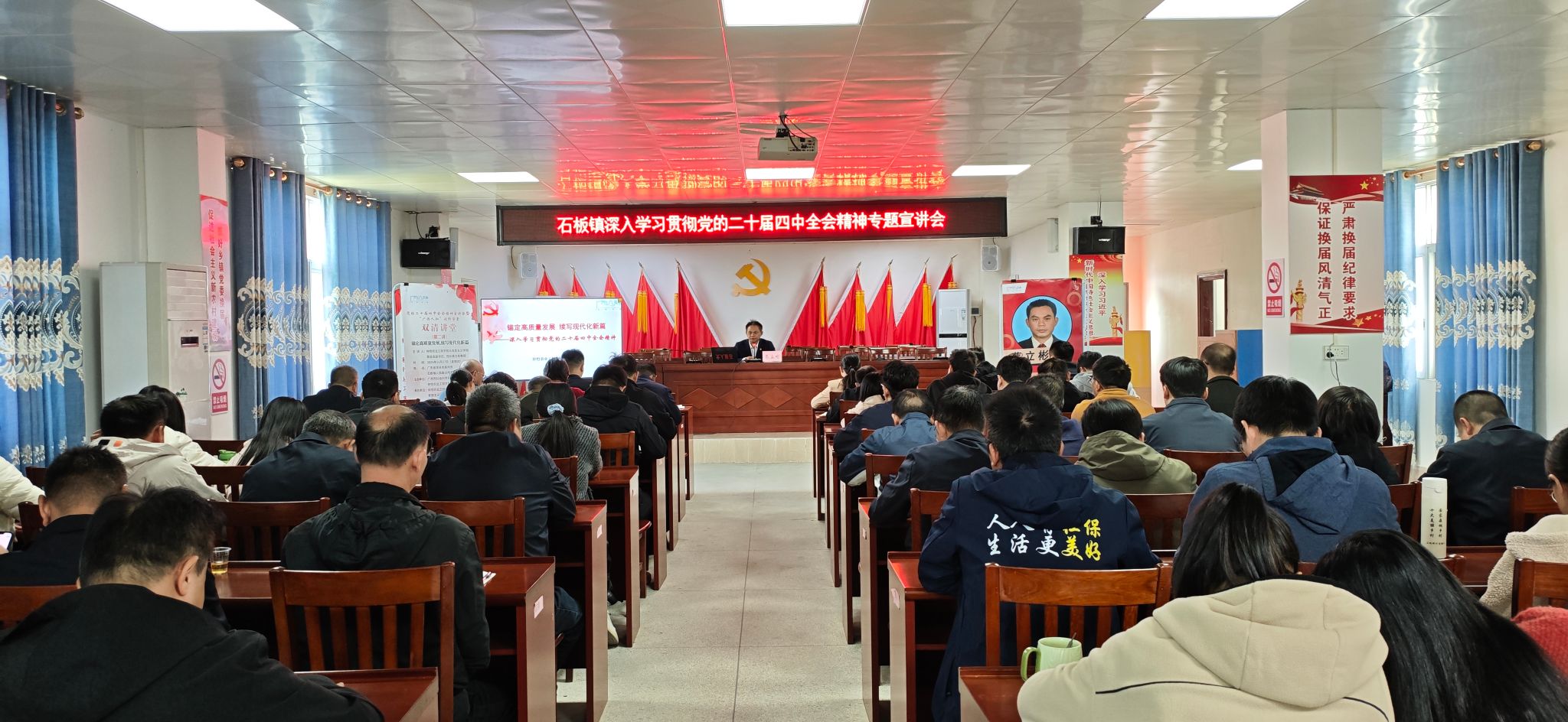 讲堂上,蔡立彬作题为《锚定高质量发展 续写现代化新篇——深入学习贯彻党的二十届四中全会精神》的宣讲报告。