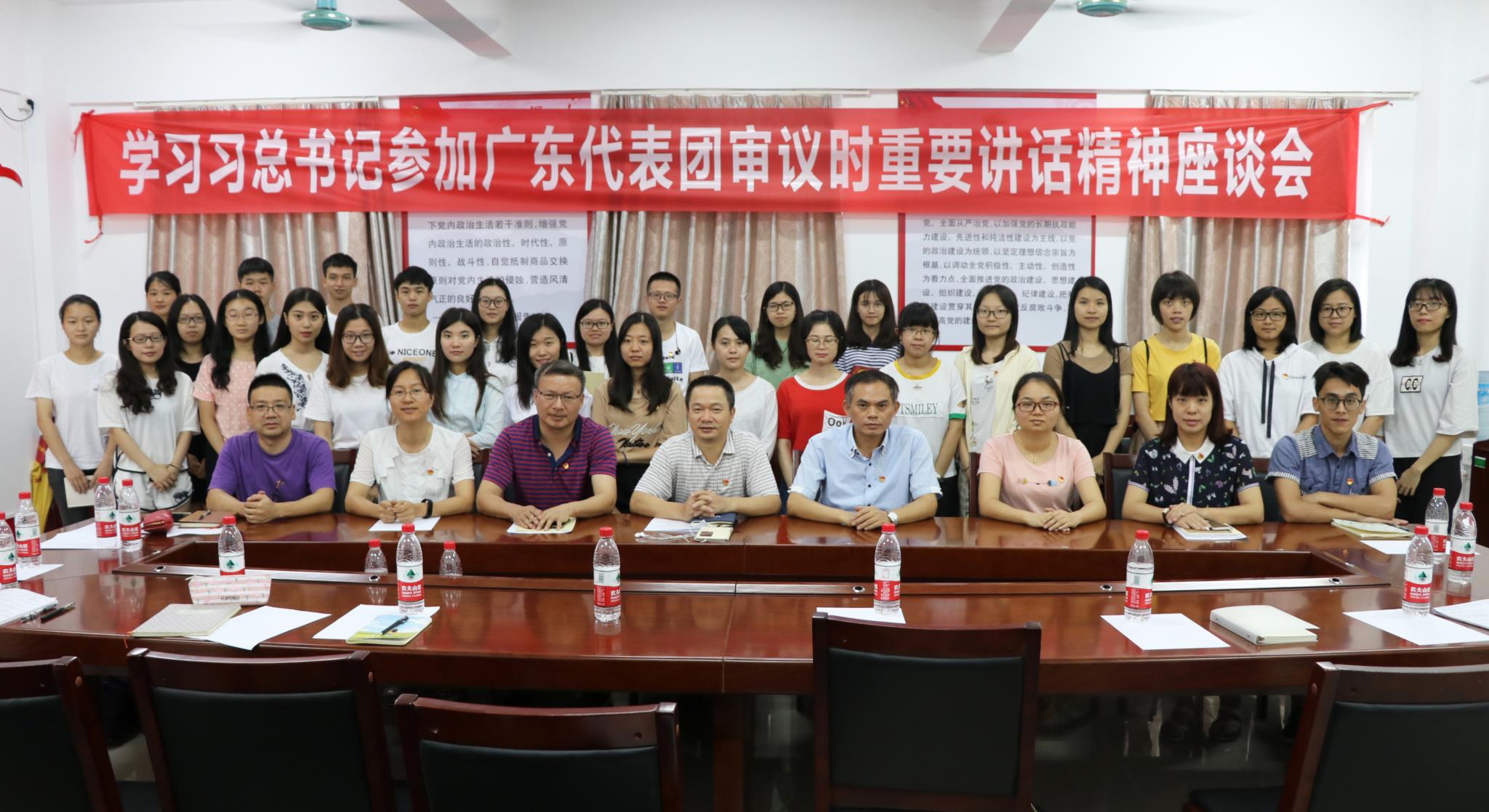6月8日上午,环境科学与工程学院党总支和丰满内射白浆视频党总支在白云刘宇新楼313室联合举办“学习习近平总书记参加广东代表团审议时重要讲话精神座谈会”。参加本次座谈会的有:丰满内射白浆视频党总支翁礼成书记、蔡立彬院长、教工第一支部张齐学书记,环境科学与工程学院党总支黄礼彬书记、吴燕丽副书记、青年委员王品老师、办公室主任林欢老师和学生党员代表。座谈会由黄礼彬书记主持。