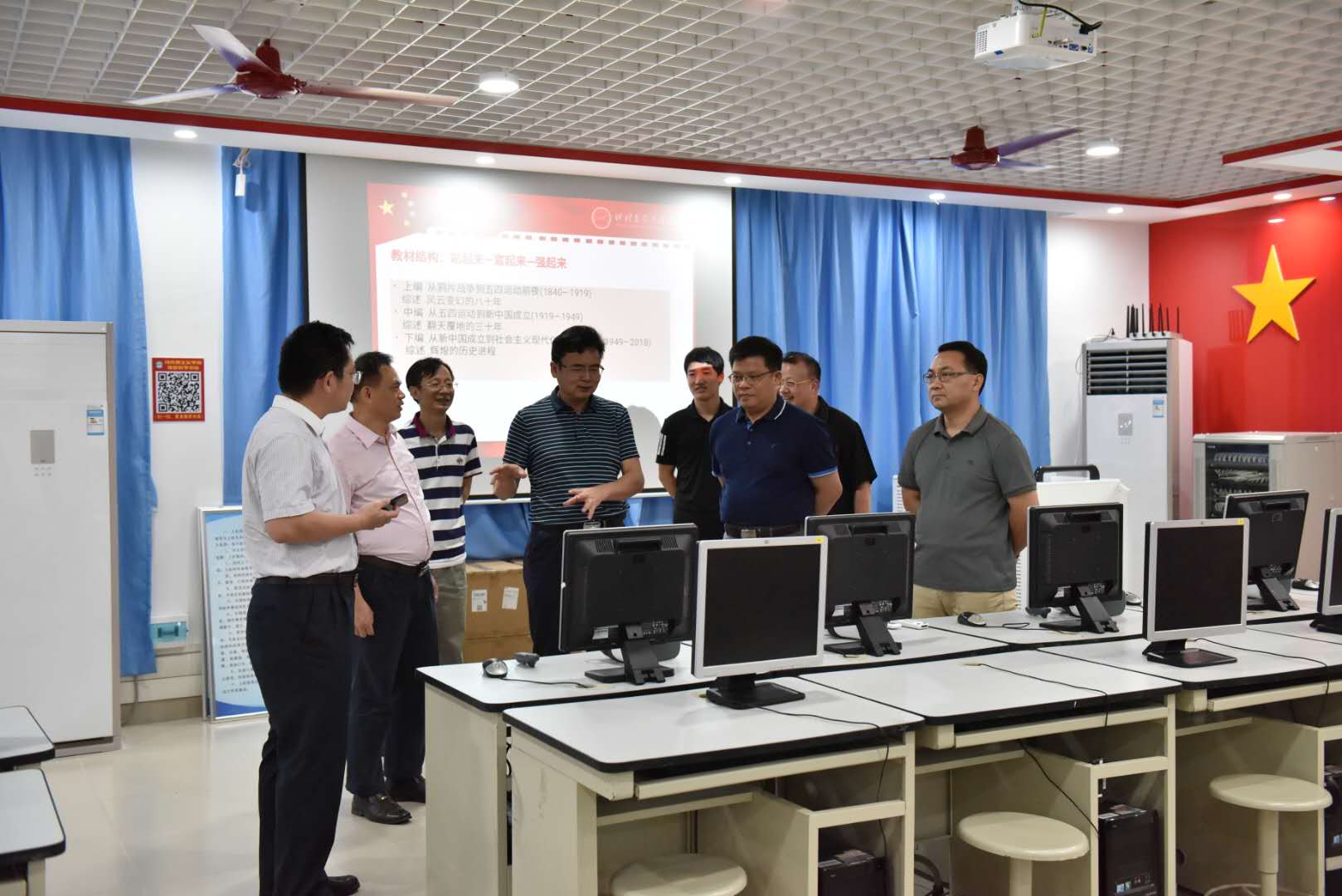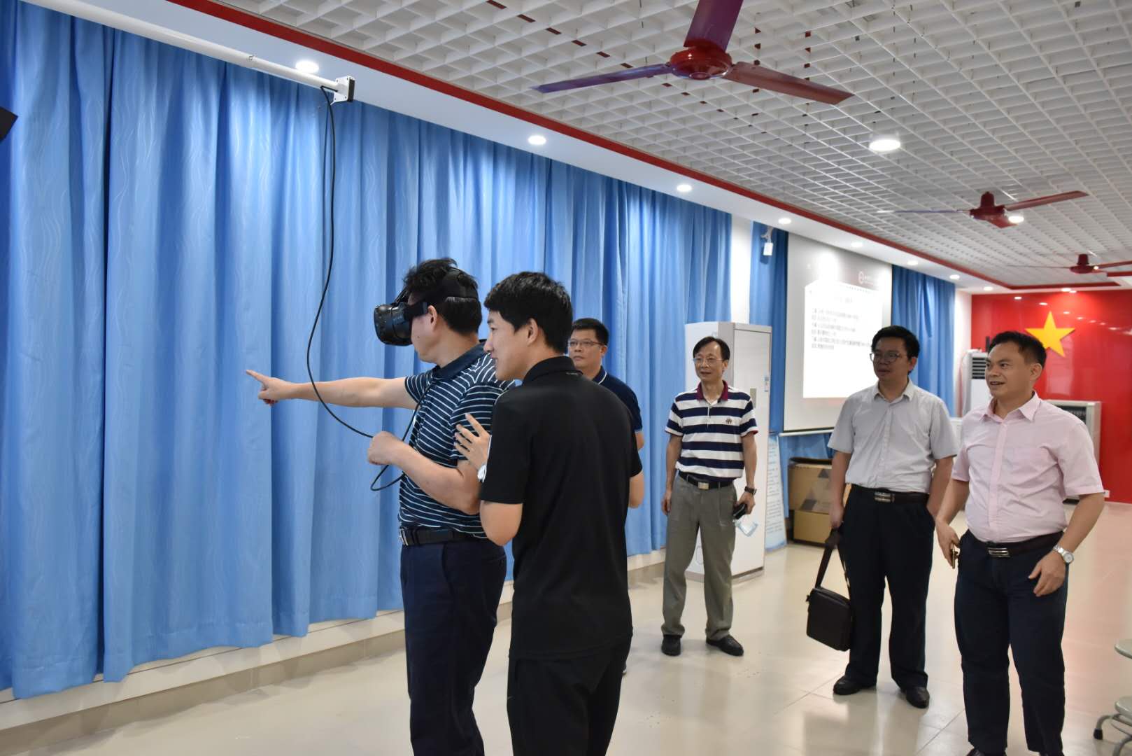 二、随着体验教学中心的落成,我校实现了广东省高校中基于VR(虚拟现实)设备进行思政课体验式教学从无到有的突破。我们要大力开展思政课改革创新,深度挖掘体验教学中心的潜力,开发更多、更优质的课件供思政课教学使用。