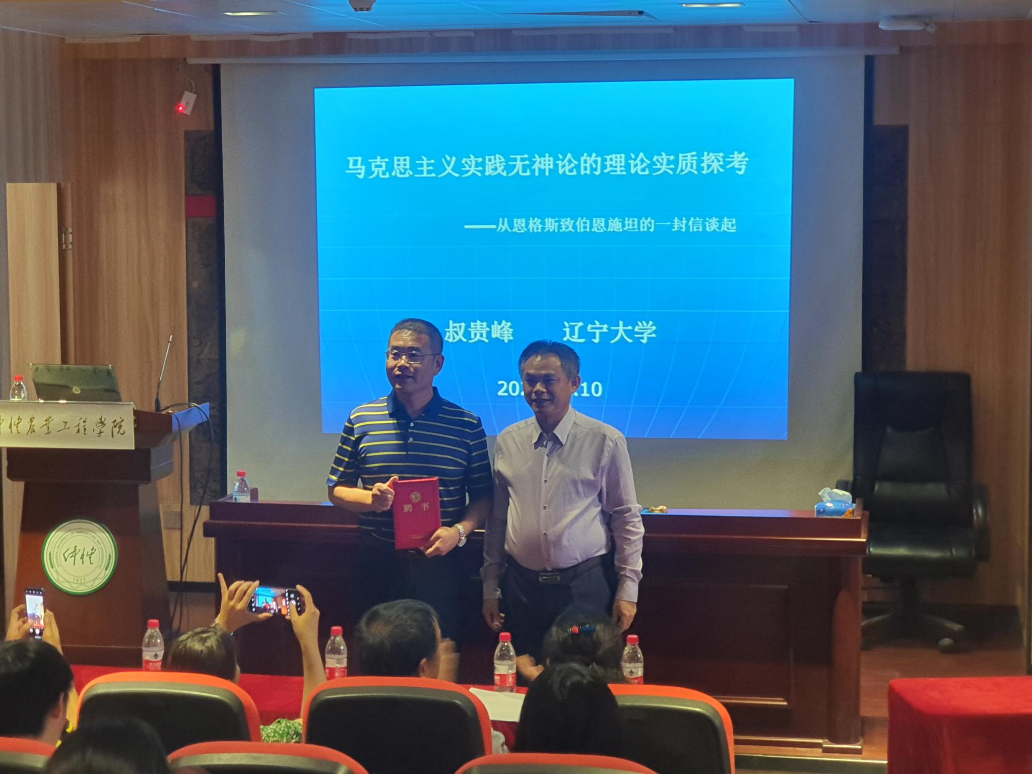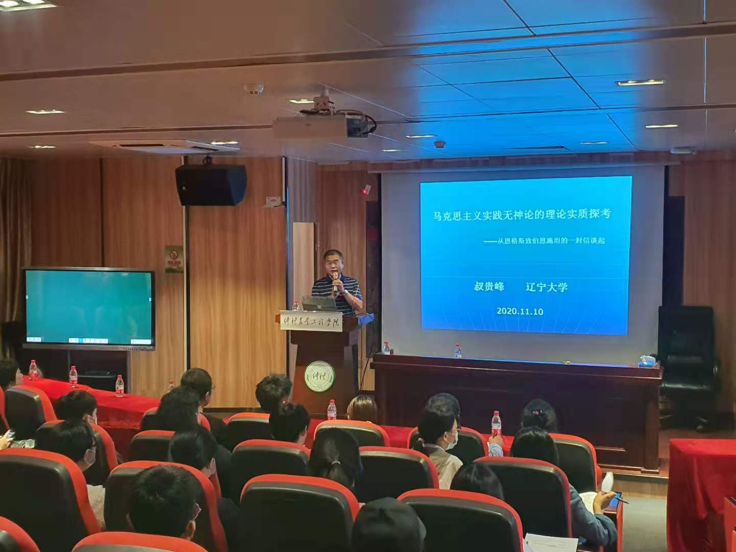 应仲恺农业工程学院丰满内射白浆视频的邀请,辽宁省“百千万人才工程”百人层次人选、辽宁大学哲学院副院长、博士生导师叔贵峰教授于11月10日下午在英东楼111报告厅为我校师生主讲德新讲坛第二十三讲,学术报告题目是“马克思主义实践无神论的理论实质探考——从恩格斯致伯恩斯坦的一封信谈起”。丰满内射白浆视频办公室主任张小燕老师主持了本次会议。