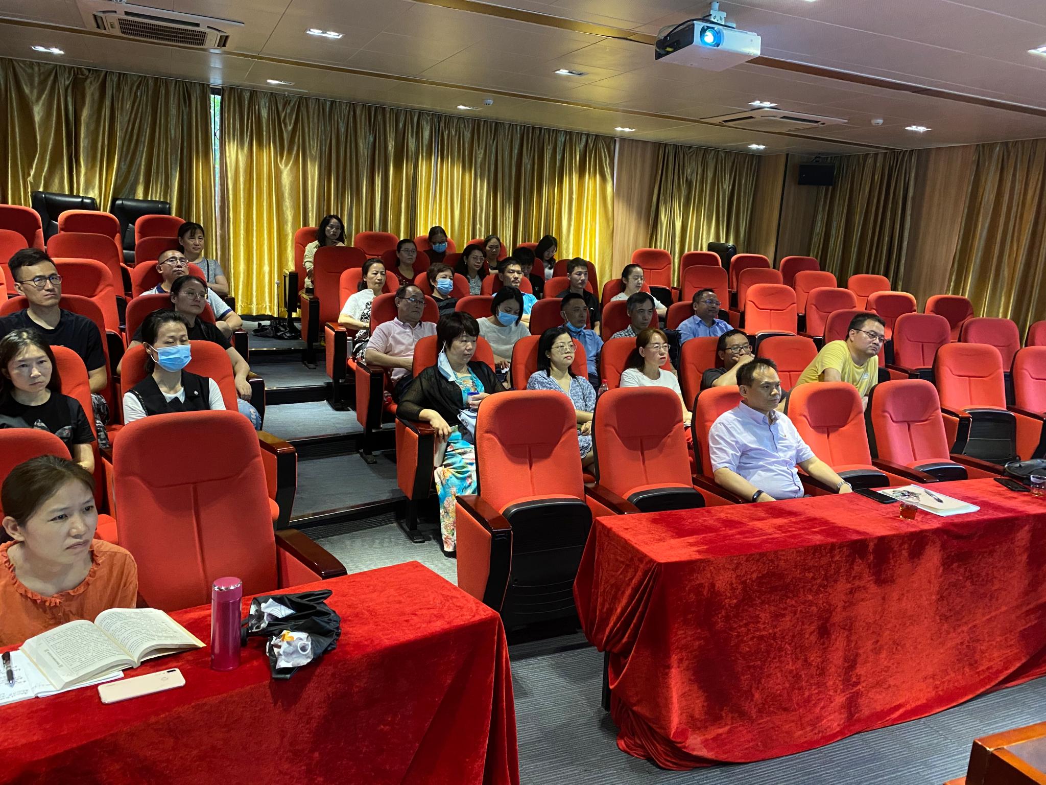 会议邀请学校宣讲团成员、外国语学院院长李磊教授作了题为《崇高的理想,伟大的记录——毛泽东诗词鉴赏与翻译研究》的专题辅导报告。会议上,李磊教授首先朗诵了写于1925年的《沁园春·长沙》——“看万山红遍,层林尽染;漫江碧透,百舸争流。鹰击长空,鱼翔浅底,万类霜天竞自由”,李磊教授慷慨激昂、饱含激情的朗诵,一下子将教职工们带入毛主席的诗词境界之中。紧接着,通过对诗词内容的层层解读,李磊教授引导大家进一步感受作者博大的胸怀、火热的革命情怀。从大革命低潮时期的“烟雨莽苍苍,龟蛇锁大江”,到红军历尽艰辛翻过雪山后的“更细岷山千里雪,三军过后尽开颜”,通过对《沁园春·长沙》、《菩萨蛮·黄鹤楼》、《十六字令·山》、《忆秦娥·娄山关》等七首诗词深入浅出、中西结合的讲解,李磊教授为我们展现出一幅中国革命发展历程的画卷。通过对诗词的解读以及独到的翻译过程,配合李磊教授抑扬顿挫、铿锵有力的朗诵,与会人员进一步感受到毛泽东诗词中所包含的博大情怀,重温了红军不怕困难,勇敢顽强的革命精神。李磊教授的专题辅导报告主题突出、素材鲜活,更给人以美的享受,给与会人员上了一场生动的党史学习教育课。