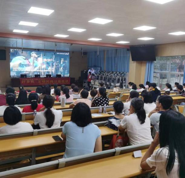 接着,“仲之红”团队跟随当地志愿者前往罗阳第六小学进行党史学习教育分享。分享会上,团队成员不仅给现场的小学老师们分享了东江纵队的英雄事迹,还引导大家观看一段党史短视频,共同探讨了革命先烈们英勇事迹背后蕴藏的磅礴爱国力量与伟大革命精神。