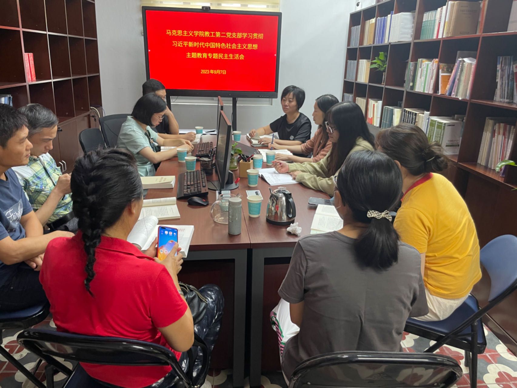 在全党开展学习贯彻习近平新时代中国特色社会主义思想主题教育,是贯彻落实党的二十大精神的重大举措。本次会议紧紧围绕学习贯彻习近平新时代中国特色社会主义思想这一主题,支部党员纷纷发言。饶晓红表示会坚持常态化政治学习,提高政治站位,并将其同步融入教学,配合新时代国家发展遭遇的各种国内外挑战和危机机遇辩证存在等客观案例,启发学生用所学马克思主义基本原理理解党的治国理政国策和方法论,培养其宏观战略思维和实事求是的理论运用能力,促进思政教育目标的实现。饶异表示通过参加主题教育学习,更深刻地理解了习近平新时代中国特色社会主义思想的科学体系和核心要义,也更深刻认识到了思政课教师所肩负的职责与使命。在全党大兴调查研究,以深化调查研究推动解决发展难题,是这次主题教育的重要内容和鲜明特色。高校思政课教师应深刻认识调查研究的重要价值,注重对社会现象和学生状况的本质探寻与规律总结,将思政课教学与社会现实结合,解决大学生的实际问题,形成以调查研究融入思政课的教学模式,让思政课更加鲜活。张达玮表示我们应该加强调查研究,把握新时代中国各项事业取得的历史性成就,了解广大人民的生活状态和面临的问题,做到理论和实际相结合,在“两个结合”的基础上讲好思政课。