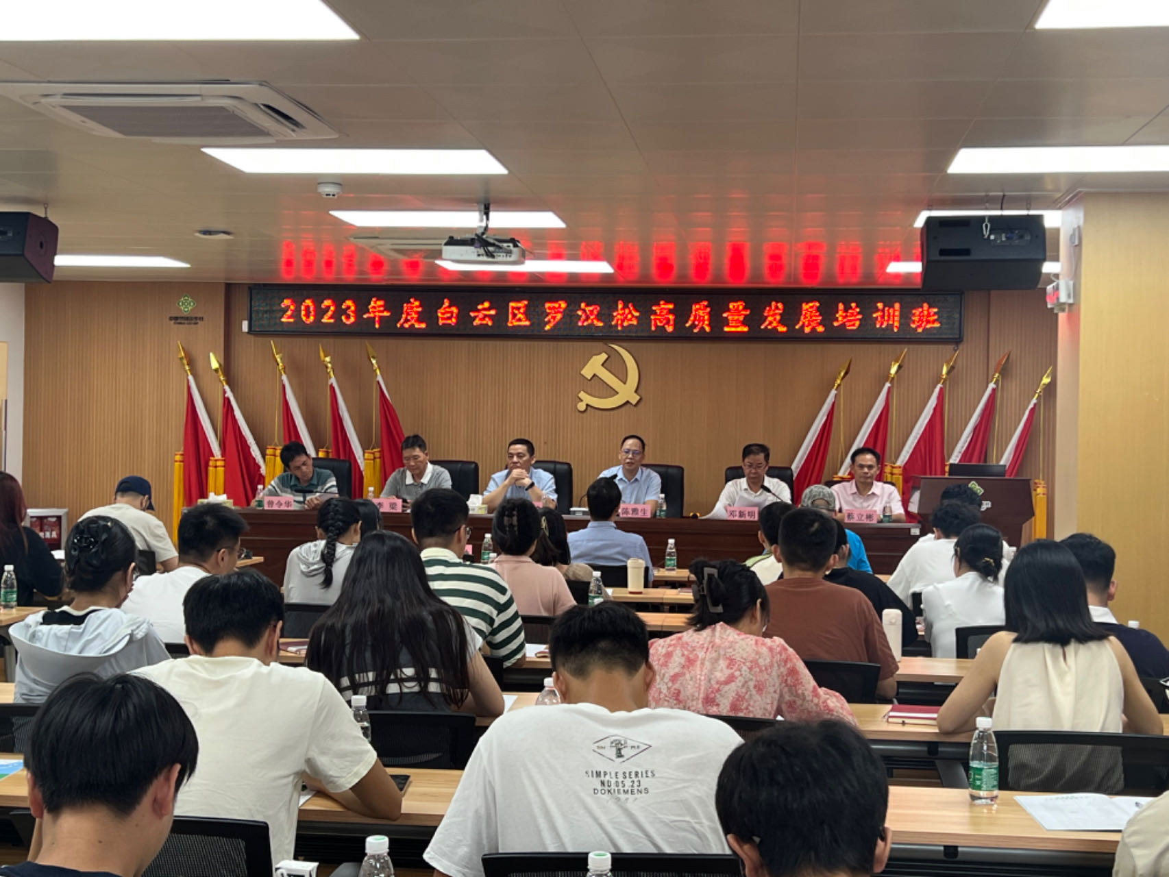 9月18日,2023年度白云区罗汉松高质量发展培训班开班仪式在白云区助农服务综合平台举行,本次培训为期5天,培训活动由钟落潭镇政府携手区供销联社、燊之源罗汉松专业合作社联合举办,区农业农村局、区政协农业和农村委员会、区供销合作联社、镇农技中心有关负责同志,以及合作社社员、本地村民、仲恺农业工程学院“广东白云罗汉松科技小院”师生等60多位学员参加培训。