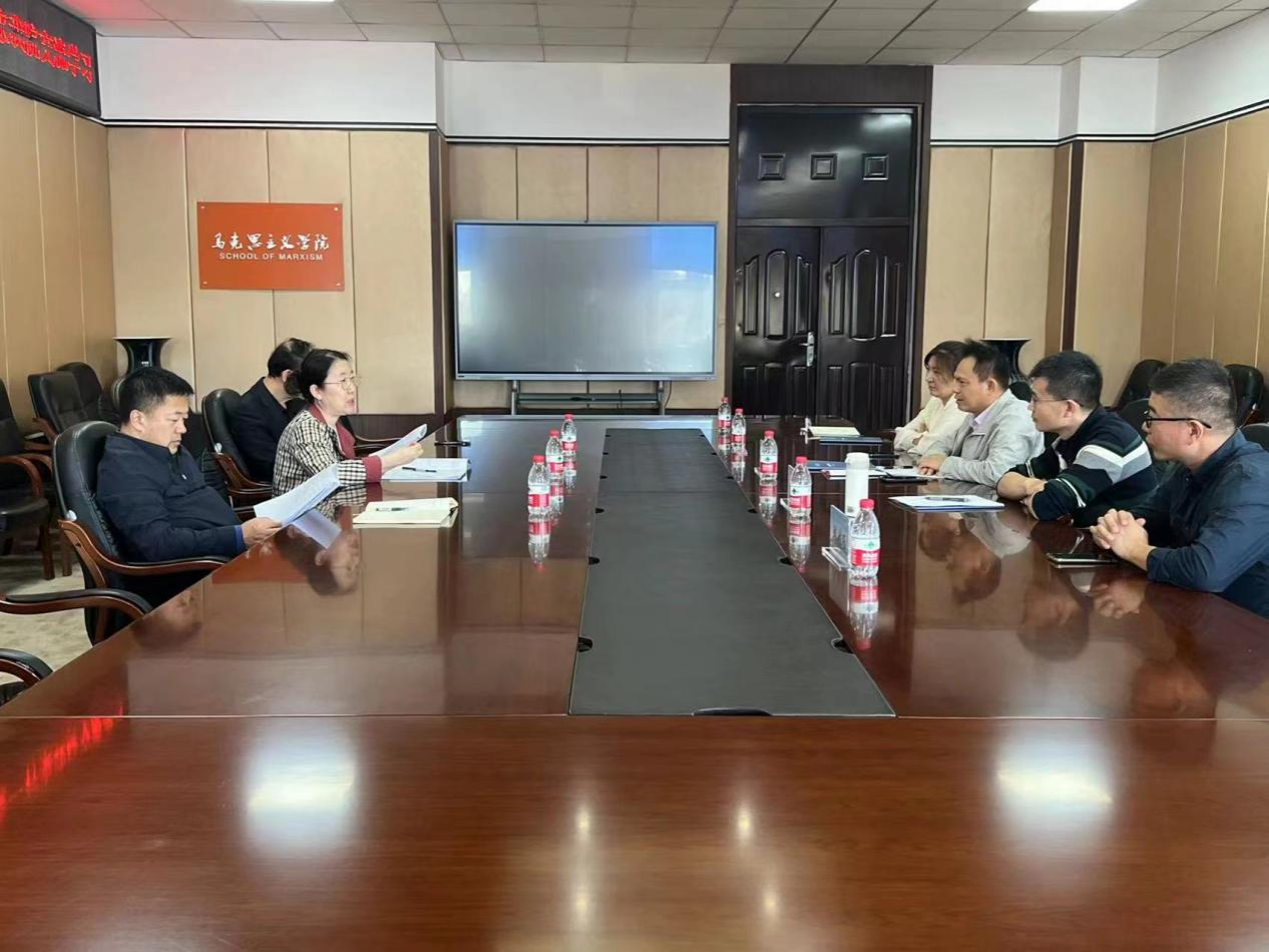 许静波对蔡立彬一行的到来表示热烈欢迎,并对该校学校、学院的基本情况、历史沿革做了全面介绍。刘大勇从学科建设、思政课教师培养、课程建设以及管理工作等方面做了介绍。