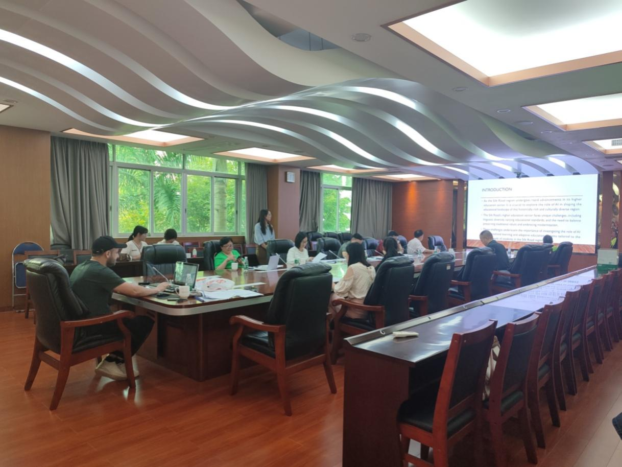 会上,董凌波副研究员就所主持的全国教育科学规划教育部重点课题《粤港澳合作办学高校的组织演化逻辑与政策改进研究》,从选题价值、研究内容、研究思路与方法、研究计划与安排等方面进行了详细汇报;博士后Khan Ghulam Murtaza以《Investigating the Role of Artificial Intelligence in Personalized Learning and Adaptive Education Systems in Silk Road Higher Education》为研究选题,就博士后研究工作计划做了详细汇报。
