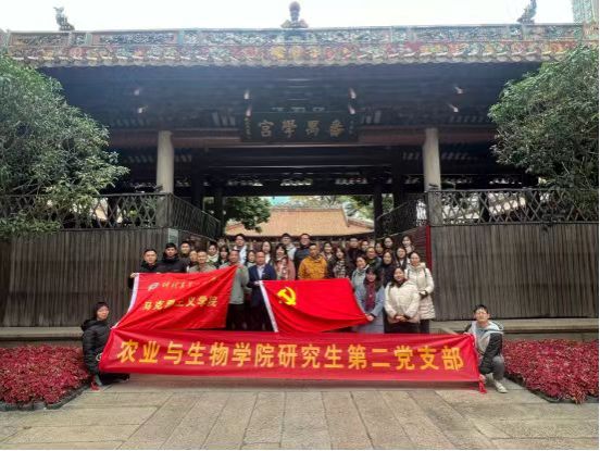 2023年12月21日下午,丰满内射白浆视频教工第一党支部同农业与生物学院研究生第二党支部在广州农讲所联合开展主题党日活动。“我志愿加入中国共产党,拥护党的纲领,遵守党的章程……”在农讲所中央的露台上,丰满内射白浆视频教工第一党支部书记刘煜带领各位党员教师和同学重温入党誓词,面向党旗、举起右拳,铮铮誓言、铿锵有力,纵使寒风凛冽,依然热血沸腾,更加坚定对马克思主义的信仰、对中国特色社会主义的信念、对实现中华民族伟大复兴的信心。2021级农艺与种业专业研究生党员李凤分享了我国农业发展现状和趋势。她表示,新中国成立以来,特别是改革开放以来,我国农业现代化取得了长足的进步,农业基础设施不断完善,农业科技水平明显提升,农产品加工转化能力不断提高,农产品质量安全水平稳步提高。中国式现代化离不开农业现代化,社会主义现代化强国建设离不开农业强国。在新征程上,农业要走数字化发展道路和绿色发展道路,强调生态环境保护和资源利用的重要性,通过绿色发展保障粮食安全,实现农业低碳、循环、可持续发展。党员教师、学生纷纷表示,要坚持以习近平新时代中国特色社会主义思想为指导,注重实践,学以致用,以更踏实的态度和更优秀的业绩为学校的高质量发展和我国农业强国建设做出自己应有的贡献。