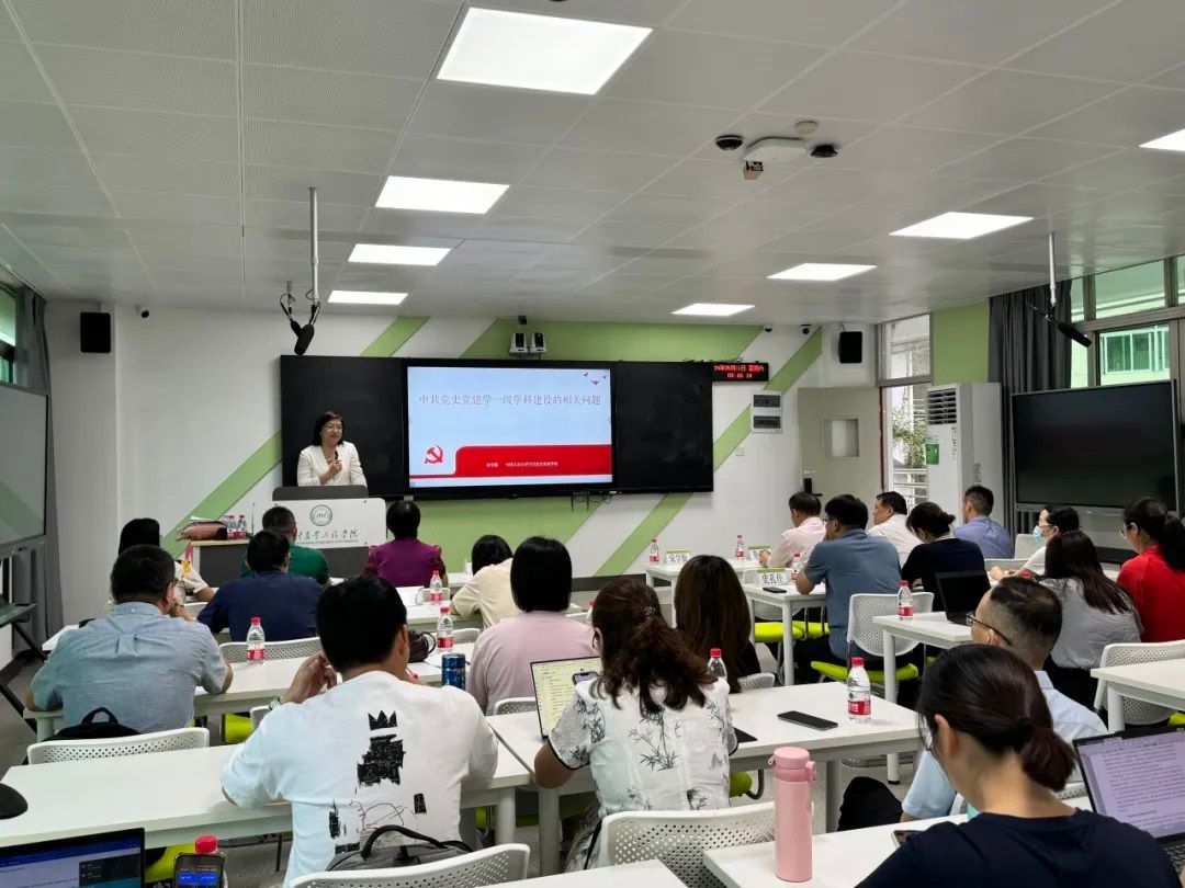 讲座伊始,宋学勤简要回顾了中共党史党建学一级学科设立的过程及其重要的现实意义和深远的历史意义,并从主干性学科和扩展性学科两个组成部分分别介绍了中共党史党建学的学科体系。随后,宋学勤从“中共党史党建学:从‘三大体系’建设到‘自主知识体系’建构”“中共党史党建学的政治属性及其自主知识体系建构的根本遵循”“中共党史党建学的学术属性及其自主知识体系建构的实现路径”三个方面进行了深入阐释。