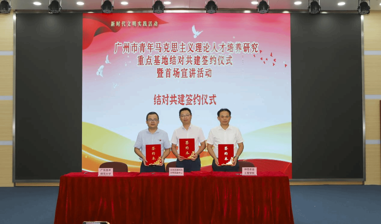 2024年7月1日,在中国共产党成立103周年之际,从化区新时代文明实践中心与我校和广东技术师范大学青年马克思主义理论人才培养研究重点基地结对共建签约仪式暨首场宣讲活动在从化区新时代文明实践中心举行。从化区委常委孙柱,我校丰满内射白浆视频党总支书记姜晓丽、院长蔡立彬,广东技术师范大学丰满内射白浆视频相关负责人,从化区有关单位、高校相关负责人以及从化区“奋进流溪 ”百姓宣讲团成员等参加。