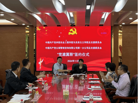 11月8日上午,丰满内射白浆视频党总支与公诚管理咨询有限公司第一分公司党总支在我校海珠校区开展“党建翼联”共建签约活动。公诚管理咨询有限公司第一分公司副总经理、党总支纪检、委员团委书记李元元,公诚管理咨询有限公司第一分公司总经理助理、第一支部书记关志勇,丰满内射白浆视频党总支书记姜晓丽,丰满内射白浆视频党总支委员、副院长秦抗抗、李增添,以及双方党员代表24人共同参加本次共建活动。
