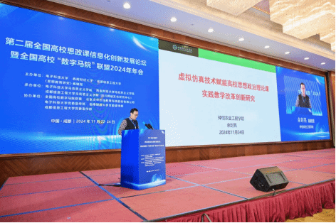 本届论坛不仅邀请代表企业到现场进行思政课信息化平台展示,还面向高校征集了思政课信息化建设典型案例并提供展位展示,促进各高校交流思政课信息化的最新做法和成果。余封亮老师以《虚拟仿真技术赋能高校思想政治理论课实践教学改革创新研究》为题目作了会议发言。