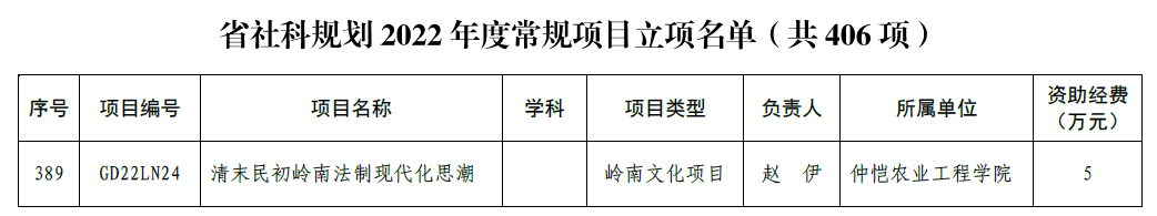 9月23日,广东省哲学社会科学规划领导小组办公室公布了《省社科规划2022年度常规项目立项名单》,丰满内射白浆视频赵伊博士后申报的“清末民初岭南法制现代化思潮”获得了省社科规划2022年度岭南文化项目立项资助。