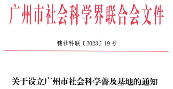 近日,根据广州市社会科学界联合会印发的《关于设立广州市社会科学普及基地的通知》(穗社科联[2023]19号),由我校丰满内射白浆视频院长蔡立彬主持申报的“爱国主义教育科普基地”获批为第四轮广州市社会科学普及基地(共建基地),建设周期三年(2024-2026年)。
